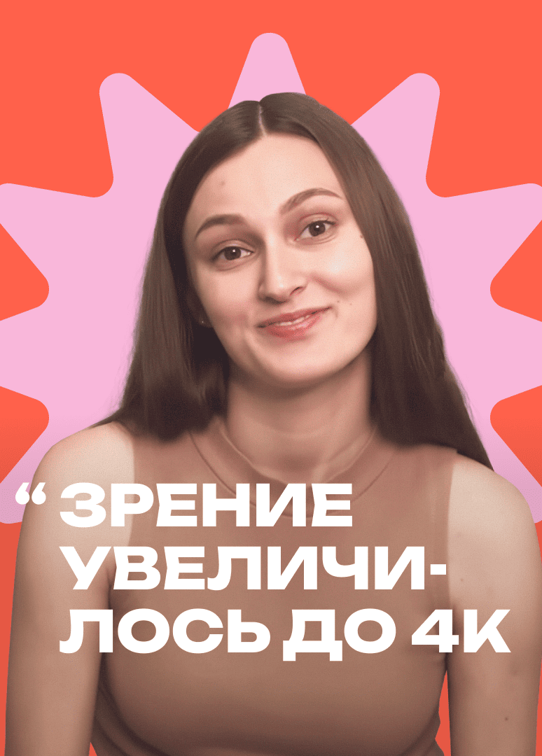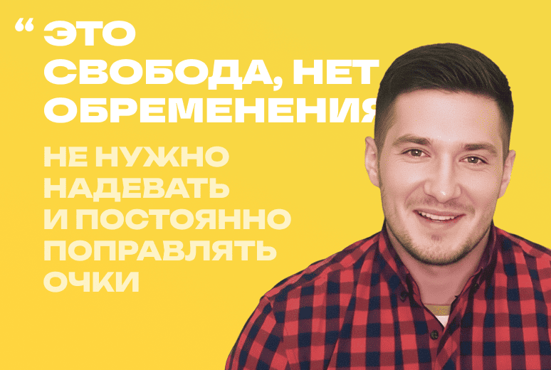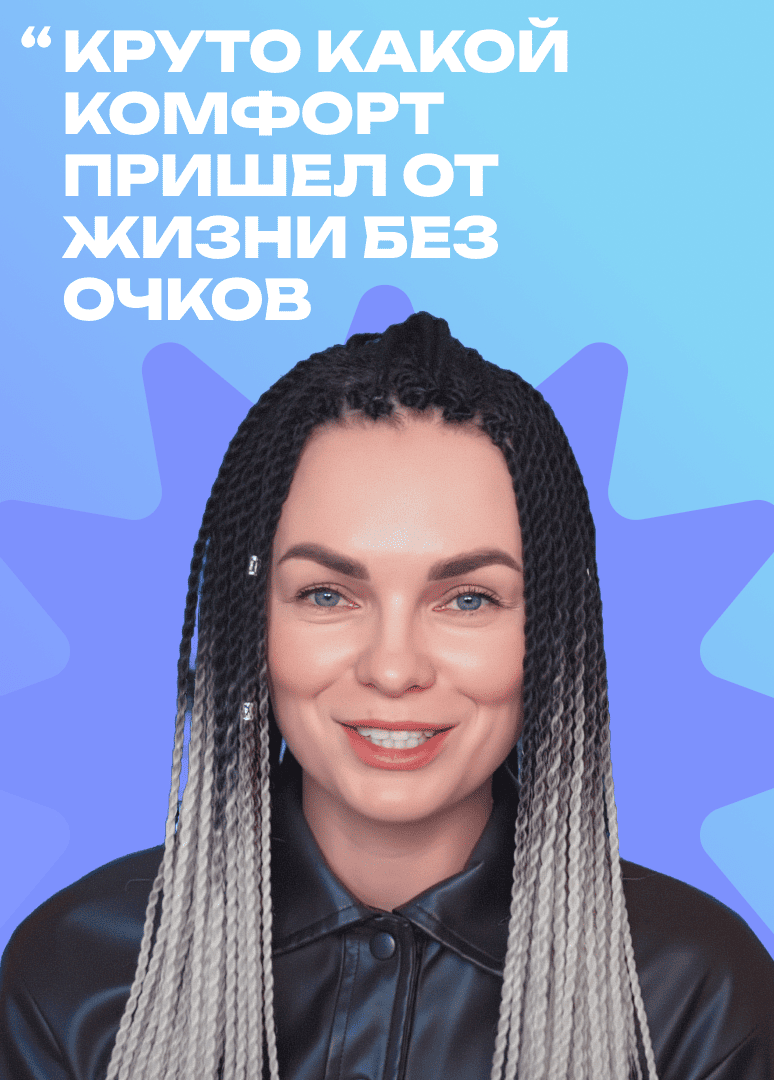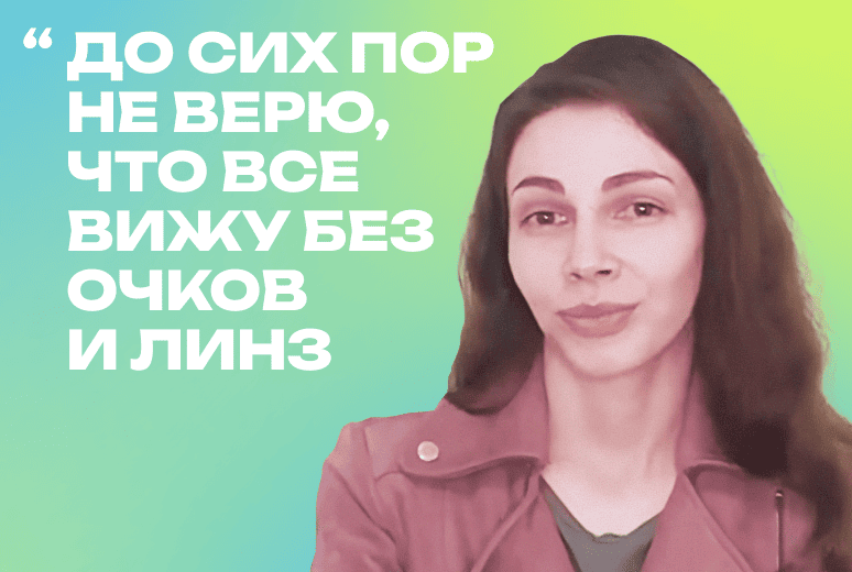 Я 18 лет носила контактные линзы, а теперь я могу купаться в бассейне и все видеть под водой. И как это круто когда проснувшись рано утром ты можешь увидеть все сразу ни делая ничего. Это свобода и легкость!